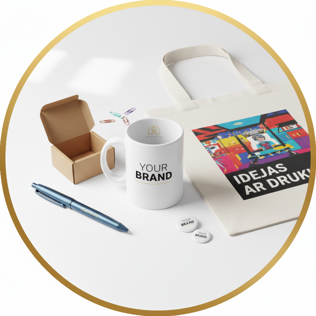 Piedāvājam personalizētas dāvanas un reklāmmateriālus, kā piemēram apdrukātas krūzītes, pildspalvas, spēles, somas, lentītes, termokrūzes, T-kreklus un vēl ļoti daudz citu ikdienā izmantojamu lietu, ko iespējams personalizēt